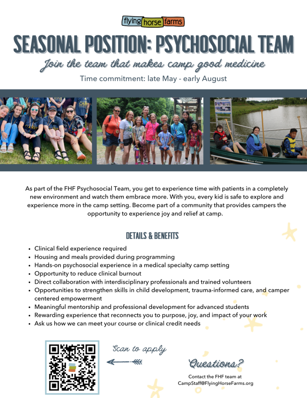 Hiring: Summer Camp Mental Health Team Member (Advanced Students, Licensed Individuals)